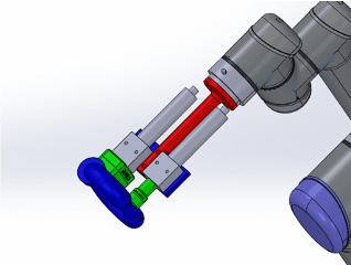 Robotcelle for montering av plasttut på 20 liters plast kanne. kollaborativ Universal robot som står åpent i produksjon uten inngjerding. Spesiallagd griper bestående av Joulin vacuum elementer. Tutene blir plukket fra magasin ved hjelp av «giraff» transportbånd, fallende sorteringsbane og oppløfter stasjon. Tut blir montert på kanne hvert 10. sekund.