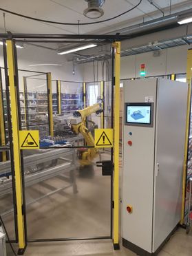 Robotcelle for håndtering av alu profiler inn fra eksisterende bearbeidingsmaskin.
